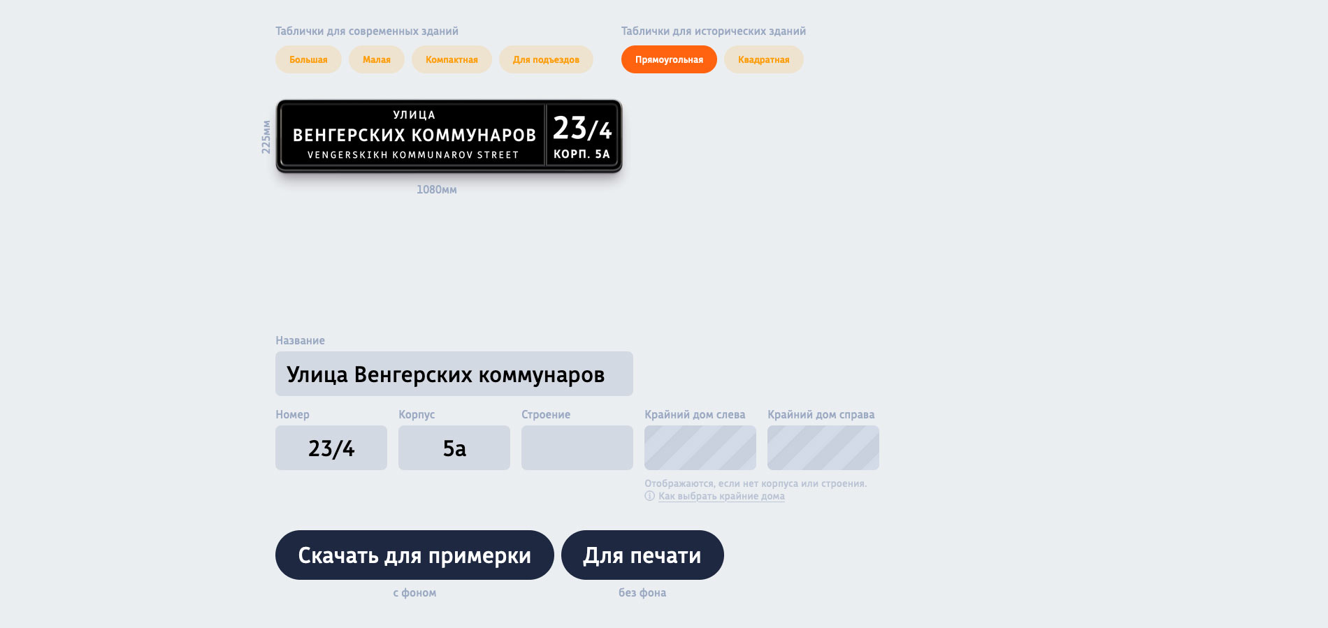 Генератор адресных табличек Екатеринбурга